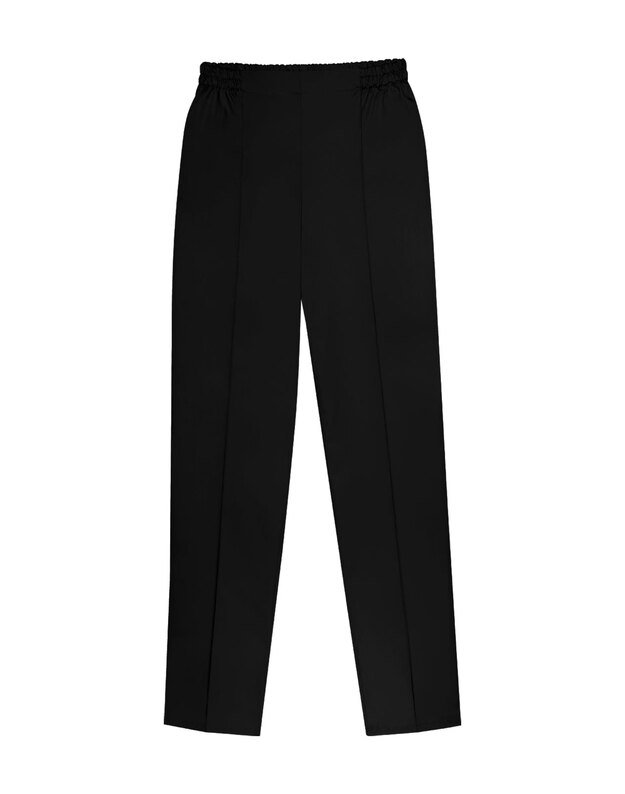 Klasikinės tiesios kelnės su guma per juosmenį.