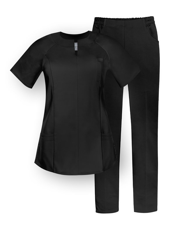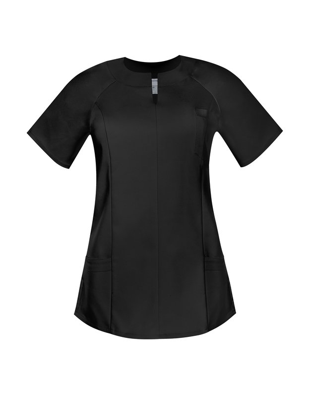 Palaidinė – trumpomis rankovėmis, uždaro stiliaus apykakle, priekyje – dvi didesnės ir viena maža kišenės.