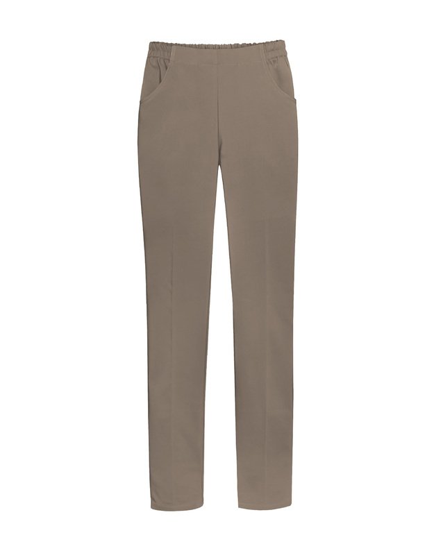 Kelnės – tiesaus silueto, juosmuo su guma. Priekyje dvi kišenės.